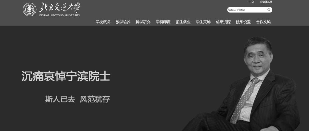 北京交通大学官网14日下午15:46分发布讣告称:中国工程院院士、北京交通大学原校长、教授、博士生导师,第十三、十四、十五届北京市人大代表宁滨同志,于2019年6月14日上午9时,在赴世界交通大会途中遭遇交通事故,经抢救无效不幸逝世,享年60岁。