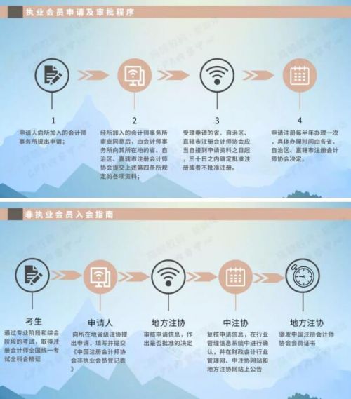 通知内容大致和江苏省差不多,高顿教育小编就不在这里展示占篇幅了,要注意的是,青海省全科合格证领取时间是在1月20日-3月31日,过时不候请抓紧时间去领取哦! 最新合格证书到手后 就可以申请成为注册会计师! CPA考完之后就可以申请成为注册会计师了!有两种选择:执业或非执业注册会计师!高顿教育小编也给大家列了一下不同会员的申请流程入会指南: