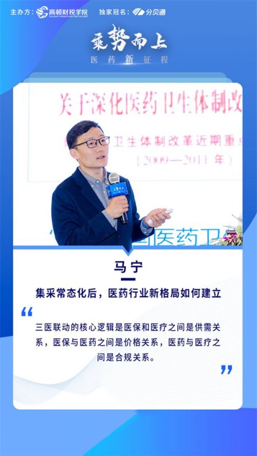 经统计2019年,规模以上医药工业企业实现主营业务收入2.6万亿元,同比增长7.95%,实现利润总额3456亿元,同比增长7.02%;实现出口交货值2116亿元,同比增长7.03%。而2020年,规模以上医药工业企业实现主营业务收入2.8万亿元,同比增长7.0%,实现利润总额4123亿元,同比增长19.3%,实现出口交货值3020亿元,同比增长40.0%。马宁先生表示通过两组数据的对比显示,医药工业总体平稳健康的发展态势,也充分验证未来医药行业发展的巨大潜能。 同时从他的角度总结三医联动的核心逻辑是解决医保、医疗、医药的平衡关系,医保与医疗之间是供需关系,医保与医药之间是价格关系,医药与医疗之间是合规关系。 并从时间维度,详细梳理我国医改政策的变迁和重要工作任务,从繁杂的政策制度改革路线、各省市试点案例要点和统计数据采集分析,清晰梳理出明确的政策导向和药企发展路径。 未来随着三明医改试点的成功,以医保为杠杆,与药企直接谈判,将压下来的巨额药价空间,再反哺公立医院,从而提升医护人员从业积极性,并有内在动力提升医疗服务。