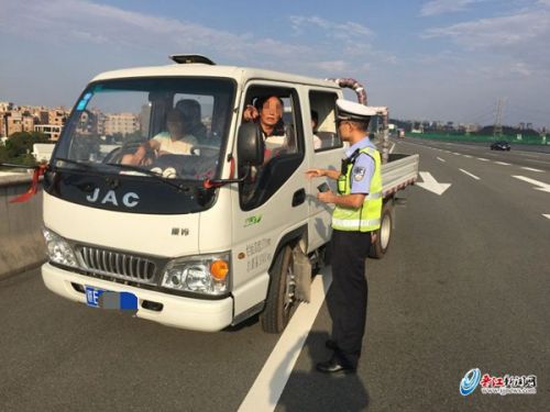 前天16时30分许,泉州高速交警支队四大队民警在巡逻至泉州环城高速晋石路段樟井互通往晋江南方向66公里+200米路段时,突然发现一辆白色小型货车朝警车方向驶来,正逆向行驶在环城高速樟井互通的车道上,过往行驶的车辆纷纷避让。执勤民警立即用警车喊话器指挥白色小型货车停靠在应急车道上,并做好安全布控。