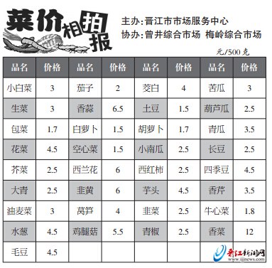 晋江菜价相拍报:外调旱菜涨幅较大 本地叶菜价格平稳