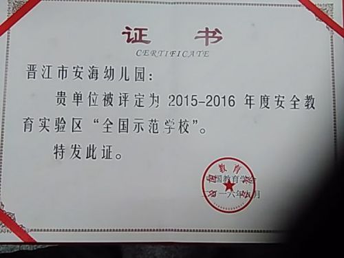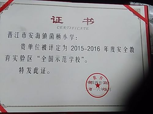 日前,中国教育学会在京召开2016年安全教育实验区工作会议暨“安全教育精品课程”征集展示活动工作推进会,会上表彰了“2015-2016年度安全教育全国示范单位(学校)”,晋江市教育局获评“安全教育全国示范单位”(全国20个,福建省3个),晋江市灵源街道群峰小学、安海镇菌柄小学、安海幼儿园获评“安全教育全国示范学校”(全国100所,福建省10所)。此外,晋江市教育局还应邀在会上作了题为《探索实行“四个三”工作方式构建具有晋江特色的安全教育工作格局》的经验交流。
