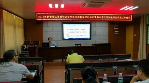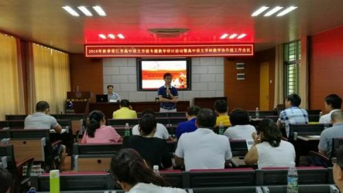 晋江市教师进修学校中学语文教研员王显文老师作了《向学科核心素养的高中语文教学》的讲座。会议,同时针对当年形势将本学年高中语文的教研主题定为“文本解读在古诗文阅读教学中的运用”。紫峰中学陈怀程老师就“文本解读在古诗文阅读教学中的运用”这一教研主题开设了《文言文教学津梁及片段教学》的讲座。