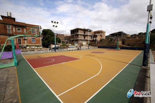 据介绍,该篮球场于2015年重新翻建,翻建的资金 是由村民们集资的,“因此,翻修后的篮球场也命名为爱 心篮球场,是大伙的爱心捐资,改善了村里的文体设施。” 朱金錨说,村里的篮球氛围较好,平时篮球场也会举办一 些邀请赛,“上到老人,下到刚会走路的小孩,只要有球 赛,大伙总要过来观看。”