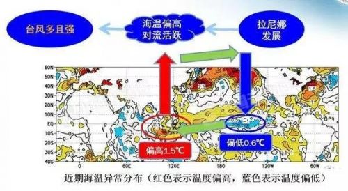 西太平洋上仍如此“热闹”,拉尼娜难脱干系。目前,赤道中东太平洋已进入拉尼娜状态。拉尼娜现象是赤道中东太平洋海温异常偏低的现象。赤道中东太平洋表层的温暖海水被强劲的信风推向西太平洋,深层冷海水上翻补充至海洋表面。因此,赤道中东太平洋海温较低,而西太平洋海温偏高。目前,热带西太平洋海温明显偏高,大气已对海洋变化产生响应,对流活跃,台风多发。南海地区海温也明显偏高,能量供应足,“莎莉嘉”在进入南海后再度加强,“海马”在登陆前也一直维持台风以上的强度。