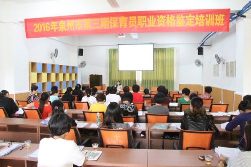泉州市第三期保育员职业资格鉴定培训在第二实幼举行 第二实验幼儿园 2016-10-25 11:35 为进一步加强幼儿园保育员队伍建设,提高幼儿保教行业劳动者职业技能素质,推行职业资格证书制度,10月22日,泉州市第三期保育员职业资格鉴定培训在晋江市第二实验幼儿园开班。 本次活动邀请专家教授进行为期4天培训,内容涵盖:环境卫生、消毒工作;进餐、饮水、盥洗和入厕、睡眠、物品与设备管理;常规的安全措施、防止意外伤害等方面。活动还将在培训后组织专业技能考试,合格者颁发《保育员》国家职业资格证。 据了解,本次培训旨在帮助保育员进一步明确自己的岗位职责,掌握规范的操作方法,提高业务知识与技能,为幼儿园更好地开展保教工作奠定基础。