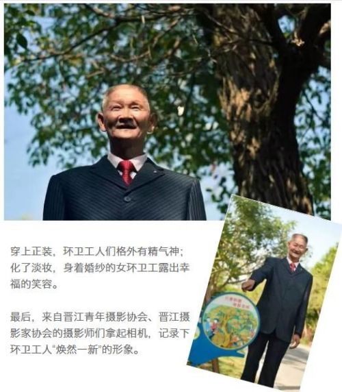 “因为工作的特殊性,他们不免给人一种‘形象不够整洁’的印象,但实际上,大家都是平等的,穿上正装后,他们的形象一样很端庄。”晋江市委文明办主任陈多多表示,希望通过此次活动,传达出一种“公平意识”,让大家关注、尊重环卫工,尊重他们的工作,甚至是感恩他们的付出。