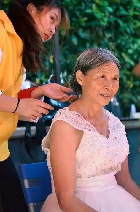 理完发,志愿者协助环卫工们换上由晋江“英林心公益”心商店提供的西装、衬衫、婚纱等。接下来,来自安海职校的学生开始为他们化妆啦,“城市美容师”们在这里也享受了一把变帅、变美的福利。