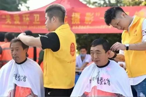8点左右,工作人员和环卫工人陆续到齐,现场愈发忙碌起来。理发师志愿者先给环卫工人理发。“平时也没时间去理发,这下好了!这是对咱们环卫工的关怀呀!”来自河南的朱景军兴奋地说。今年60岁的他,已经在晋江做了10年环卫工作。