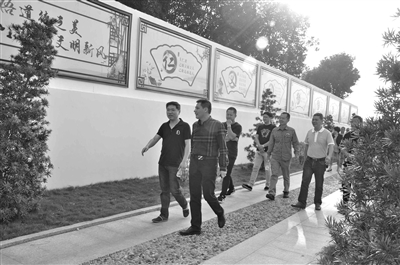 当天下午,英林镇各村参加活动的人员先后参观了柯坑村家风文化墙和嘉排村家风馆。来到柯坑村敬老院门口的小广场,只见旁边一面条形的墙被布置成家风文化墙。据了解,这面墙长约百米,墙上是关于家风家训的内容,很是美观。该家风文化墙和柯坑村新落成的敬老院、小广场、水池构成了柯坑村一景。原先是一面不怎么美观的墙,结合家风家训做成室外景观,一举两得,各村参加活动的人员纷纷为此点赞。