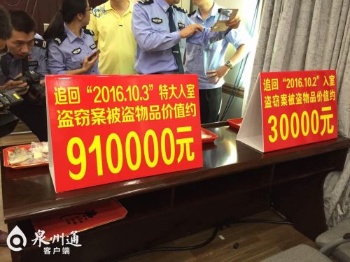 晋江:小偷入室盗窃90多万 警方迅速侦破全数追回赃物