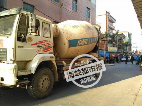 晋江一水泥罐车硬生生碾过电动车 女子当场身亡(图)