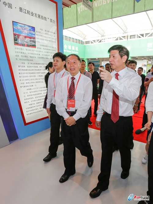 要说本次博览会上哪个展馆最“吸睛”,不得不提首次亮相的中国·晋江鞋业发展指数馆。昨日上午,晋江市委书记刘文儒、市长张文贤带队巡馆时向嘉宾介绍,晋江将力争把该项目打造成为世界鞋业发展的“晴雨表”。