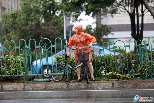 现场,不时可以看到行人撑着雨伞通过此缺口横穿马路,而后小心地走入车流中。更让人胆战心惊的是,一名路人穿着雨衣抬着自行车横穿而过。