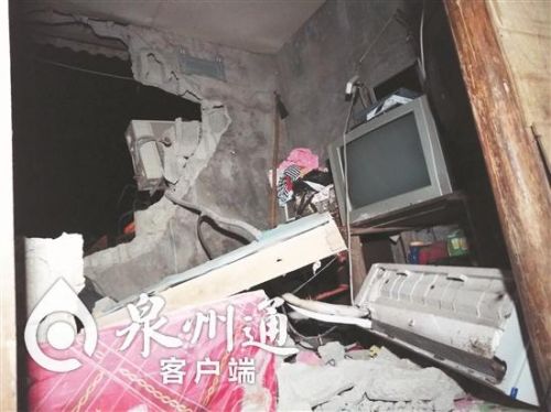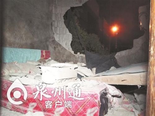 前晚6时许,在晋江金井围头,在床上熟睡的3岁娃突然被倒塌的墙壁水泥空心砖砸中,在门外吃饭的父母进屋扒开碎砖,救下孩子,所幸男童没有生命危险,而其13岁的哥哥跑得快,只是腿部轻微擦伤。肇事的是隔壁集装箱堆放场内的一辆挂车,司机倒车时不慎撞倒了该出租房的墙壁。