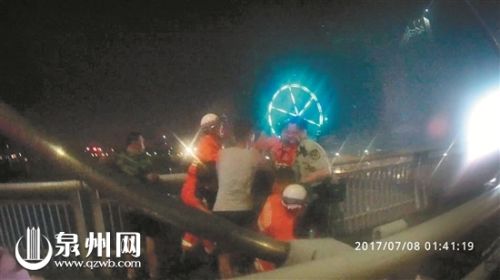 男子还不起债欲跳晋江大桥 民警一把拉回他