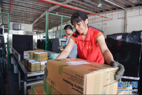 7月12日,在福建泉州晋江陆地港国际快件监管中心,工作人员将一批入境的“海淘”商品过机扫描。(新华社记者 宋为伟摄)