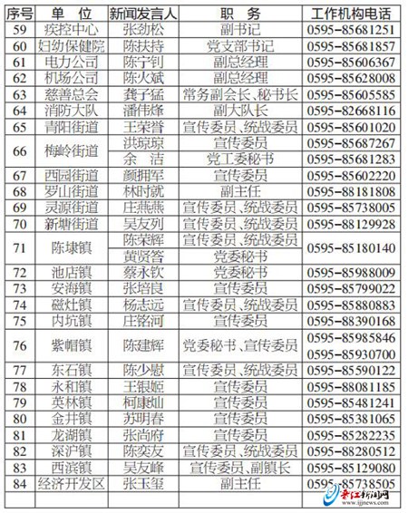 晋江88名新闻发言人名单及新闻发布工作机构电话公布