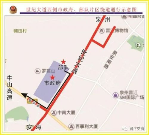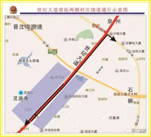 ⑧.晋江高速出口往罗山方向的车辆,经晋光路→长兴路→晋宁路→双龙路→和平路绕道通行,或者经晋光路→双龙路→疏解公路→灵源、安海等绕道通行。