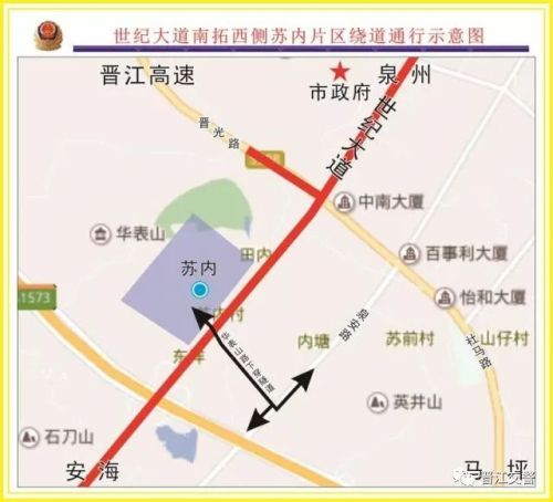 ①.安海往返泉州方向的车辆,从安海北环路←→恒安灯控路口←→泉安南路←→泉安中路(或和平路)绕道通行;