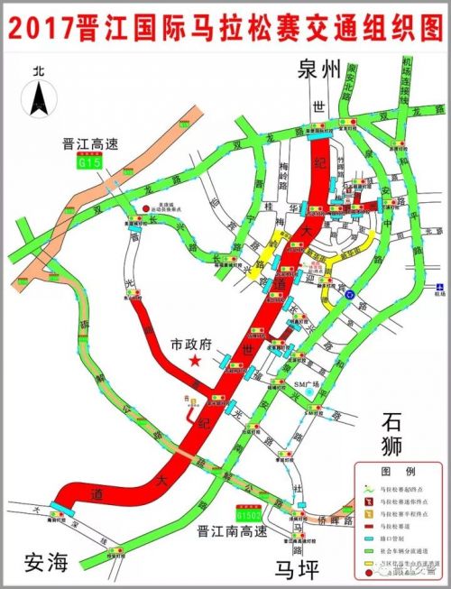 ②.石狮往返泉州方向的车辆,从SM灯控路口←→和平路绕道通行;