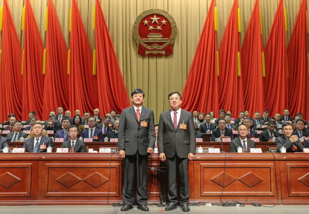 晋江市委书记王明元与新当选的晋江市第十八届人大常委会主任陈长义合影