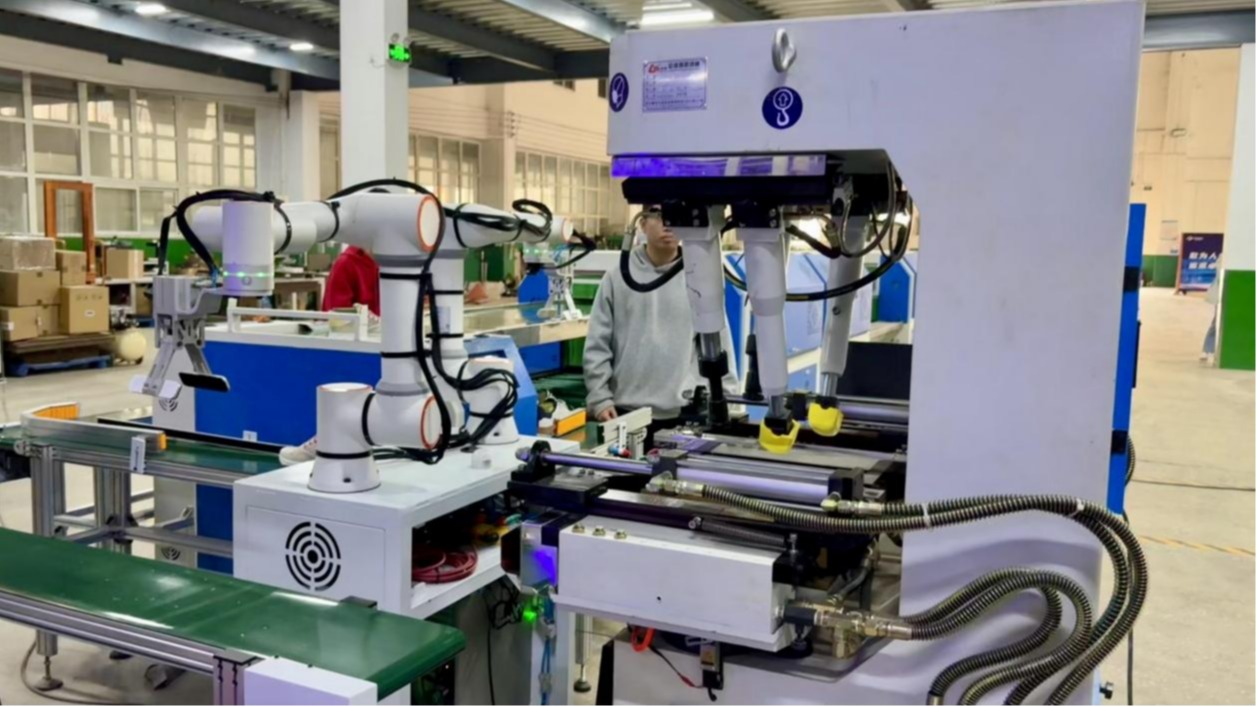 再往前走,一条自主研发的自动化生产线映入眼帘,工作人员正有条不紊地调试设备。该公司自动化项目负责人包生万介绍,以往一条鞋类生产线需要四五十名员工,如今依托这条自动化生产线,仅需不到三十人即可完成同等甚至更高产量,在节省人工的同时,减少原材料浪费、降低生产成本。
