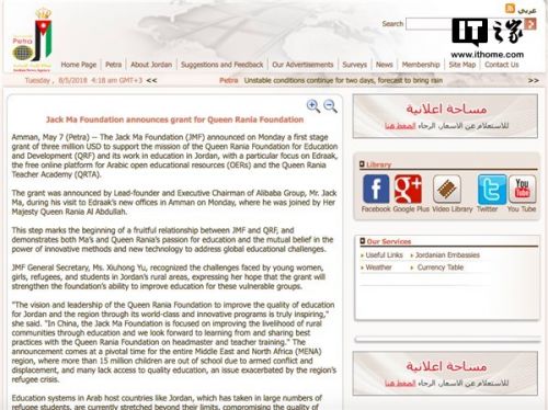 马云为约旦“妇女培训和儿童教育”捐助300万美金