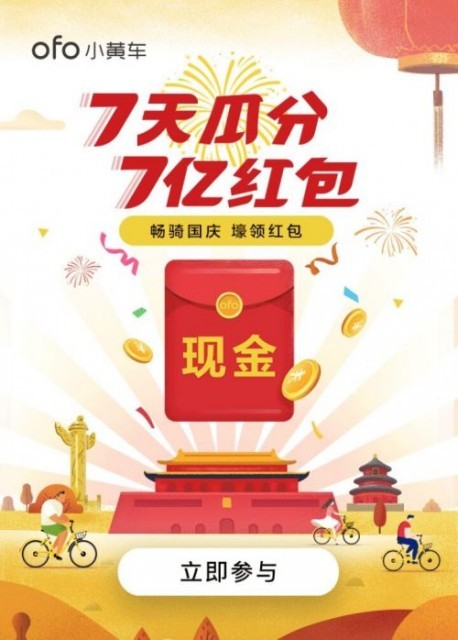 ofo国庆开启新一轮补贴 骑小黄车可获现金红包