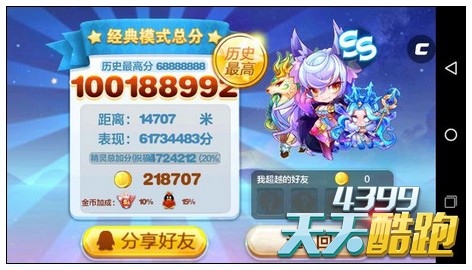 天天酷跑九色鹿经典两套万米爆分搭配 万米高分轻松拿