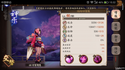 阴阳师手游神乐满级属性怎么样?下面就和小编一起来看看阴阳师手游神乐满级属性图吧!