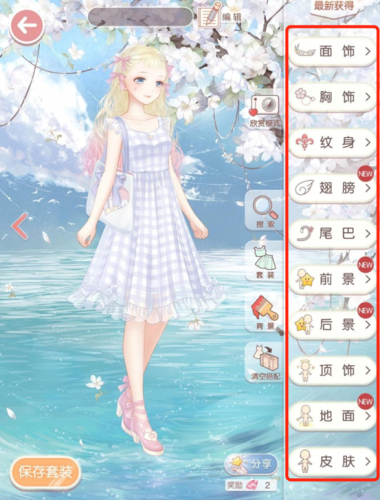 本次优化对饰品类(头饰、颈饰、手持与特殊)的部件按类别进行了划分,玩家在游戏中可以更加方便的对“饰品”进行寻找和使用。新版本中,玩家可以在饰品中一目了然的找到面饰、胸饰、纹身、翅膀、尾巴、前景、后景、顶饰、地面等。