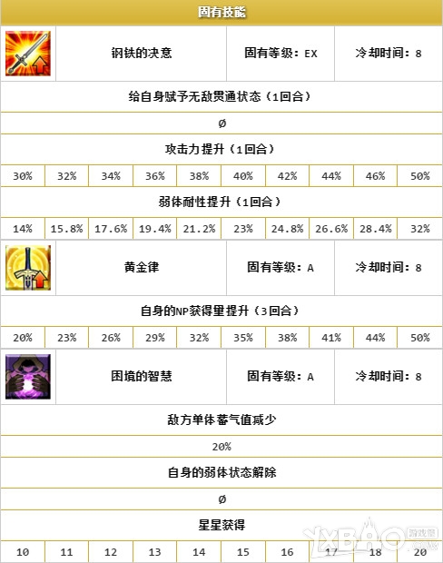 给自身赋予无敌贯通状态(1回合),攻击力提升(1回合),弱体耐性提升(1回合)
