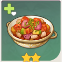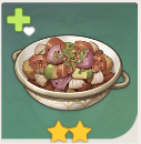 描述:多种蔬菜组成的大杂烩。据说从前有一位最为挑剔的枫丹美食家,在吃完这份朴实的菜肴后,回想起了自己的童年,热泪盈眶。或许故事有夸大的成分,但眼前的鲜美滋味的确货真价实。