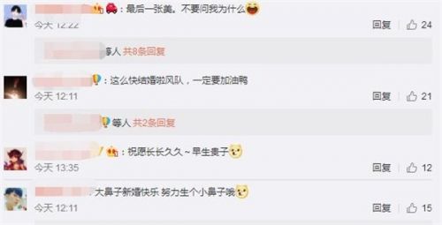 回顾这对新人,若风曾在8月初微博宣布脱单,与女友戚蓝尹相恋,并在同月中旬正式求婚成功。不到两个月的时间里,又公布了国庆结婚喜讯,不得不说风队的效率还是高,风一样的男人实至名归。不过也有网友指出,其实两人相恋已久,只是时到今日才正式宣布,也算是有情人终成眷属。