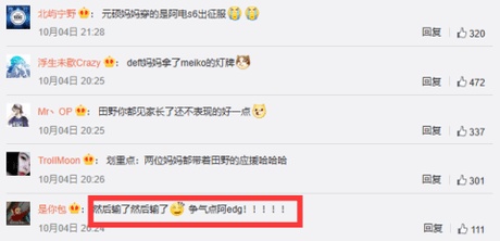 不过Deft和pawn妈妈到的那场比赛,EDG发挥的并不是很好,微博的粉丝只能心疼的说: