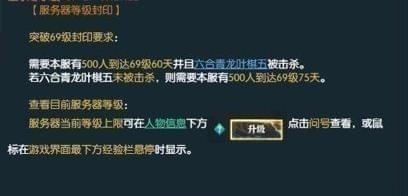突破69级封印要求:需要全服有500人达到69级60天,并且六合青龙叶琪5 被击杀