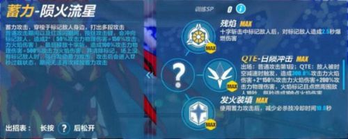 【QTE-日殒冲击】出场直接打出普攻第一段;QTE由时空减速触发,造成物火混伤,还能给敌人附加火焰标记和点燃。