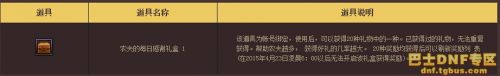 2015年4月23日凌晨6:00至5月21日凌晨6:00,Lv30及以上的角色每天通关4次推荐地下城即可领取1个【农夫的每日感谢礼盒 2】。