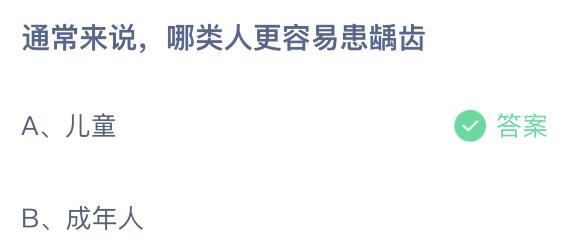 通常哪类人更容易患龋齿6月5日今天蚂蚁庄园 儿童还是成年人