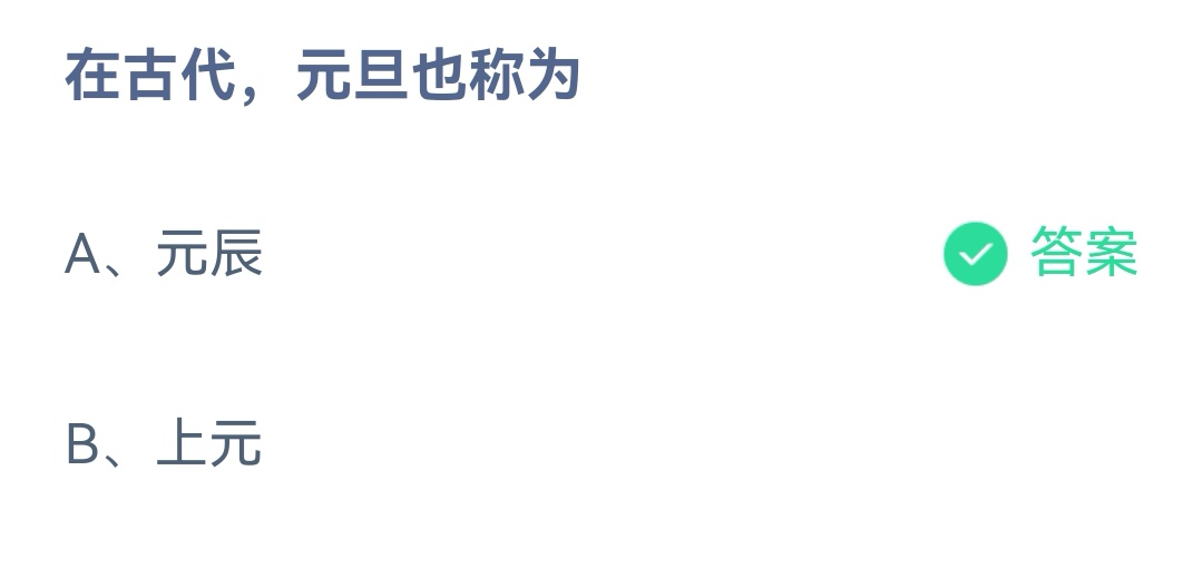 在古代元旦也称为元辰还是上元?蚂蚁庄园小课堂1.1今日答案元旦古代别称