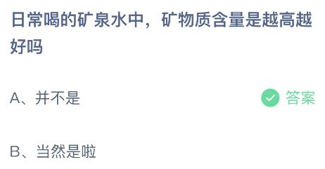 日常喝的矿泉水中矿物质含量是越高越好吗?蚂蚁庄园2.25答案