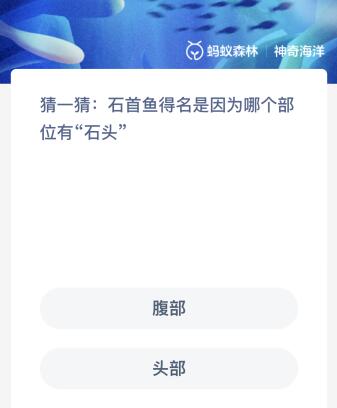 石首鱼得名是因为哪个部位有“石头”?这是支付宝蚂蚁森林里神奇海洋2023年11月9号今日学习海洋小知识答题的问题,下面为大家详细介绍2023年11月9日今天神奇海洋知识答题答案。