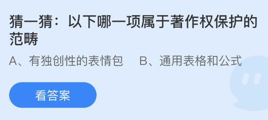 猜一猜:以下哪一项属于著作权保护的范畴?这是2024年蚂蚁庄园4月26日庄园小课堂的问题,下面为大家详细介绍2024年4月26日今天蚂蚁庄园课堂小鸡饲料答案。