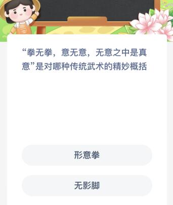 “拳无拳,意无意,无意之中是真意”是对哪种传统武术的精妙概括?蚂蚁新村今日答案最新4.28