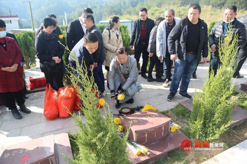 在烈士墓前,后辈们摆上了家乡的清茶、龙岩花生,诉说着无尽的思念。烈士的哥哥吴济光因96岁高龄、腿脚不便,未能成行,但老人录制了一段手机视频,让后辈带到弟弟墓前,隔空“见面”,诉说哀思。