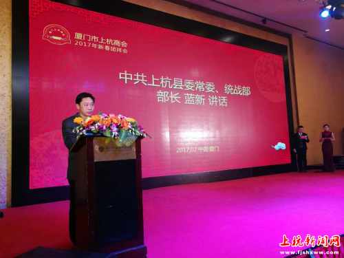 2月25日,厦门市上杭商会举办年会暨新春团拜会。厦门市委统战部副部长、工商联党组书记王沁,上杭县委常委、统战部长蓝新出席活动并讲话。县工商联、商务局、旅游局负责人参加相关活动并作项目推介。