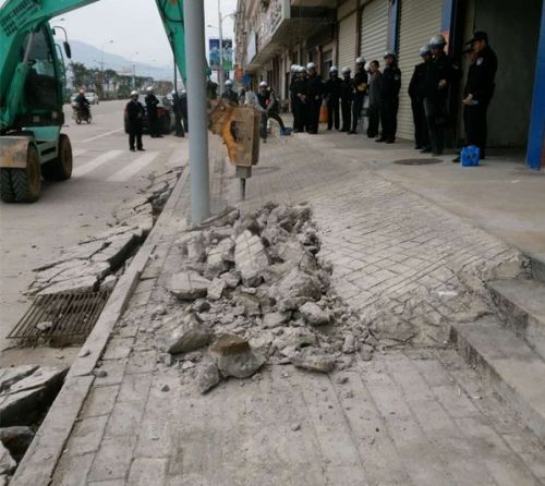 12月5日,县政府组织城管局、公安局、住建局、城投公司、平川镇等单位100余人,聘请10名专业拆除工人、钩机1部、运载车4部,由张旭东副县长任整治组组长、城管局局长任现场总指挥,集中拆除了东环路两侧沿路沿街的水泥斜坡100余户。