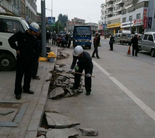 武平县多部门整治东环路沿街店面路沿水泥斜坡
