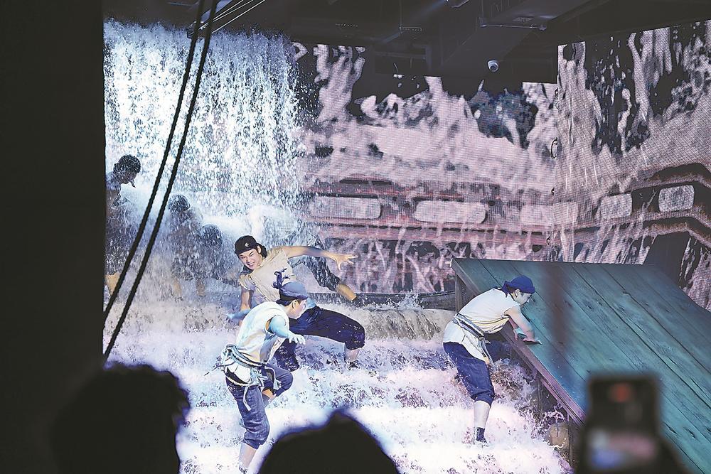 3日,《再回闽南》媒体观演活动在漳州古城侨芗剧场举办。演出现场,舞台和观众席之间的界限被打破,一同被集成在一个巨大的船形装置上。借助最新的机械、光影技术,观众仿佛站上甲板,沉浸式体验“顺泰号”在大海上劈波斩浪的情境,感受闽南人下南洋时的凶险与勇毅。